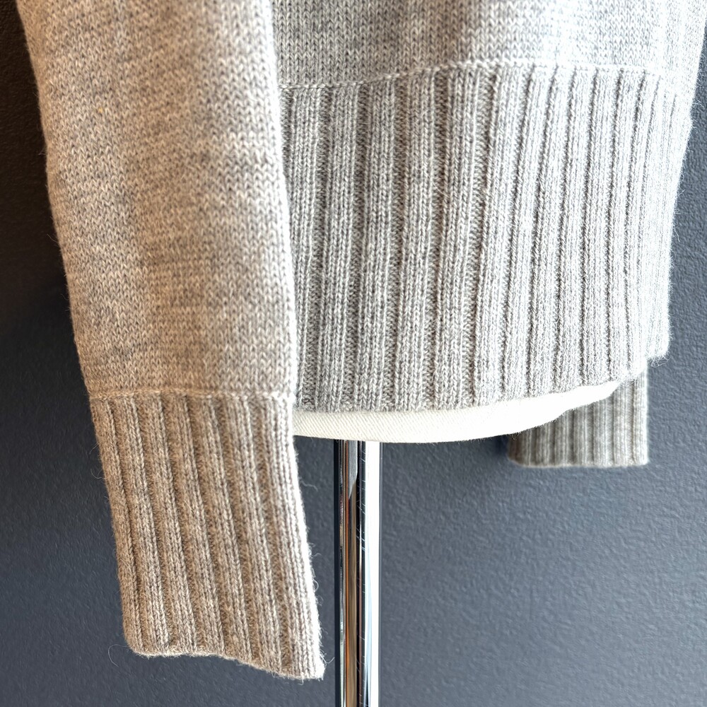 寒い日に嬉しいタートルセーター。袖口がストレートになって、太目のリブがアクセントになったデザインです。デンマークで人気の袖口で、シンプルなデザインの中に少しだけトレンドを取り入れています。着用イメージも割とすっきりとしたシルエットなので、アウターを着ても綺麗なスタイリングをキープ出来ます。アルパカ100%なので、暖かく、スタイリングしやすいDoveカラーは1枚あるととても便利です。