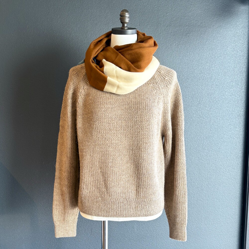 Ivory、Pebble、Doveカラーは天然色で、アルパカの毛色を活かした優しい自然な色になっています。Greenは定番人気のカラーで、お洒落なスタイリングを楽しめます。インナーにはタートルやブラウス、Tシャツなど、様々な重ね着を楽しんで頂けます。